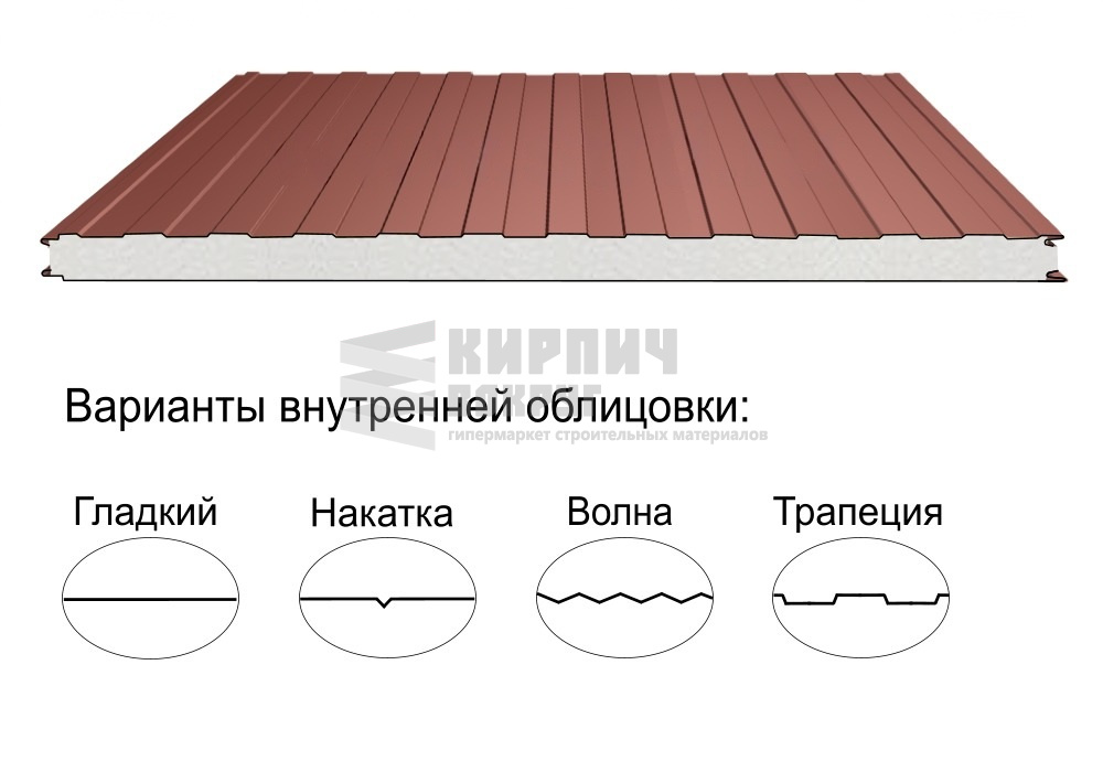 В интернет-магазине "Кирпич Вокруг" Вы можете купить Стеновая трёхслойная сэндвич-панель трапеция 50мм 1190мм с видимым креплением пенополиизоцианурат Полиэстер Металл Профиль в Кемерово, а наши специалисты готовы вам помочь с выбором по адресу: , или оказать консультацию по телефону: .